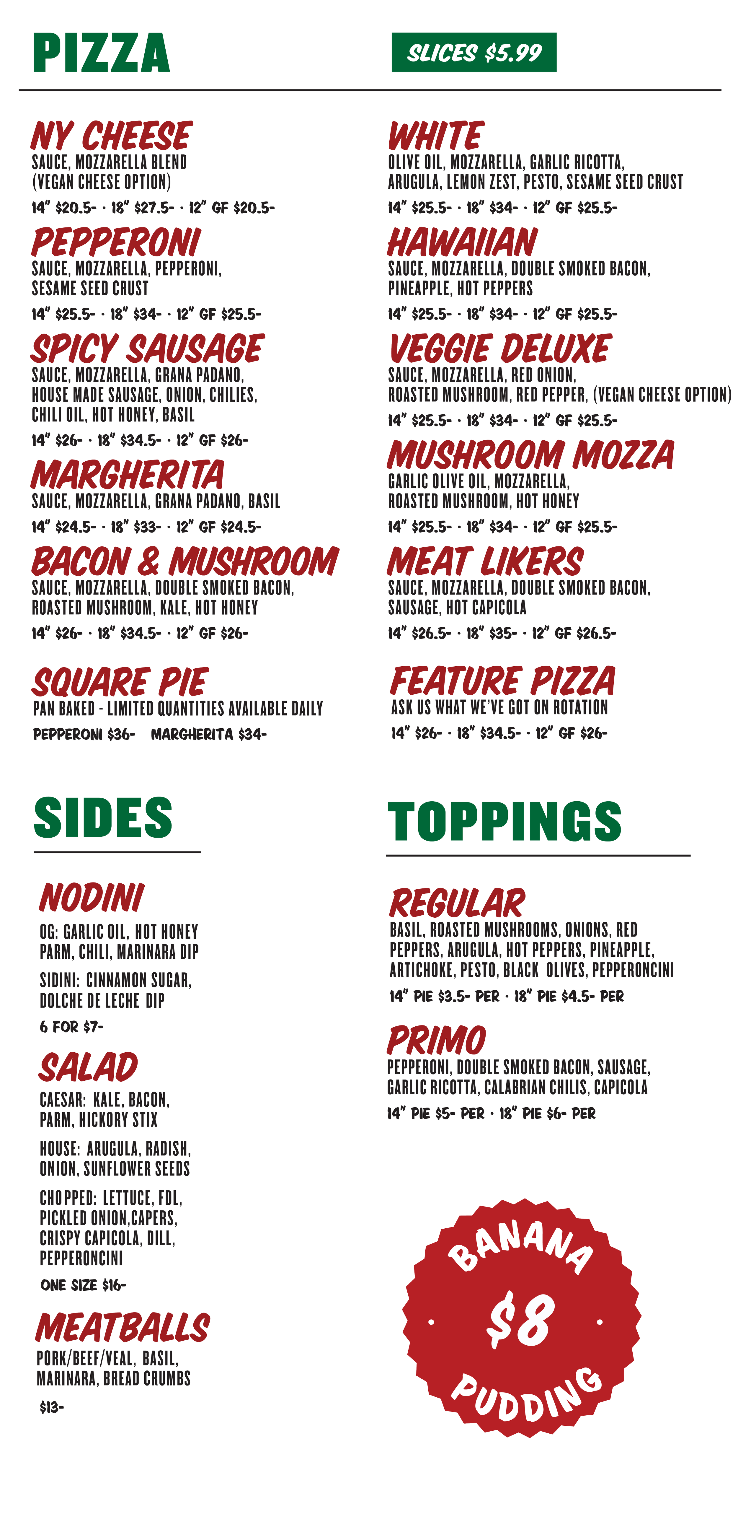 *MENU PRICING BELOW FOR DINE-IN & TAKE-OUT ONLY